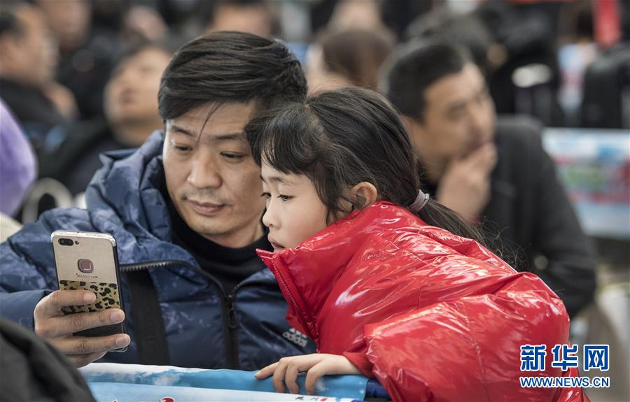 1月14日,一對(duì)父女在西安北站候車大廳用手機(jī)查看信息。路再遠(yuǎn)、再艱辛,也擋不住回家的腳步。在西安北站的每一個(gè)角落,處處充滿溫情和歸鄉(xiāng)的盼望。連日來,西安北站日均發(fā)送旅客12.1萬人次,一列列春運(yùn)的列車,載著中國(guó)人的鄉(xiāng)愁,駛向遠(yuǎn)方。新華社記者陶明攝