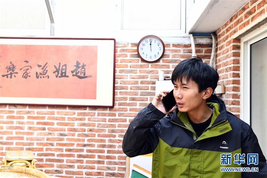 在榮成市煙墩角村,于海洋在接游客訂單電話(1月12日攝)。新華社記者 隋先凱 攝