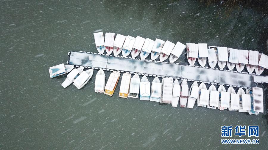 這是1月15日拍攝的合肥市包公園雪景(無人機照片)。 當(dāng)日,安徽省合肥市迎來降雪天氣。雪中的合肥市包公園景色別致。 新華社記者 張端 攝