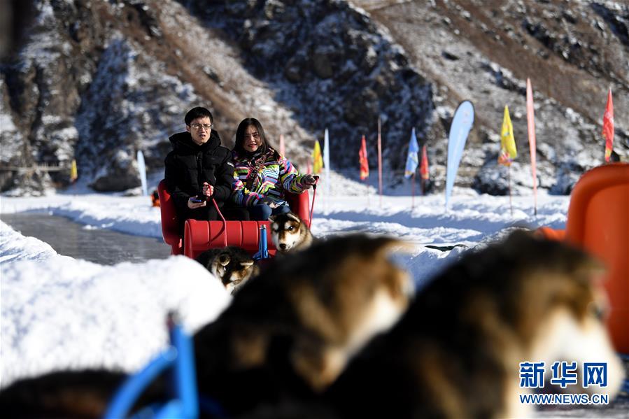 1月18日,游客在新疆天池景區(qū)玩電動狗拉雪橇。新華社記者 沙達提 攝