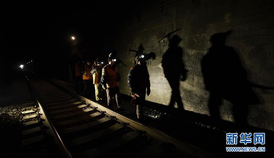1月9日,在加格達(dá)奇工務(wù)段西羅奇嶺二號(hào)隧道,西羅奇維修工隊(duì)工作人員進(jìn)行隧道除冰作業(yè)后準(zhǔn)備返回工隊(duì)住所。新華社記者王毓國攝