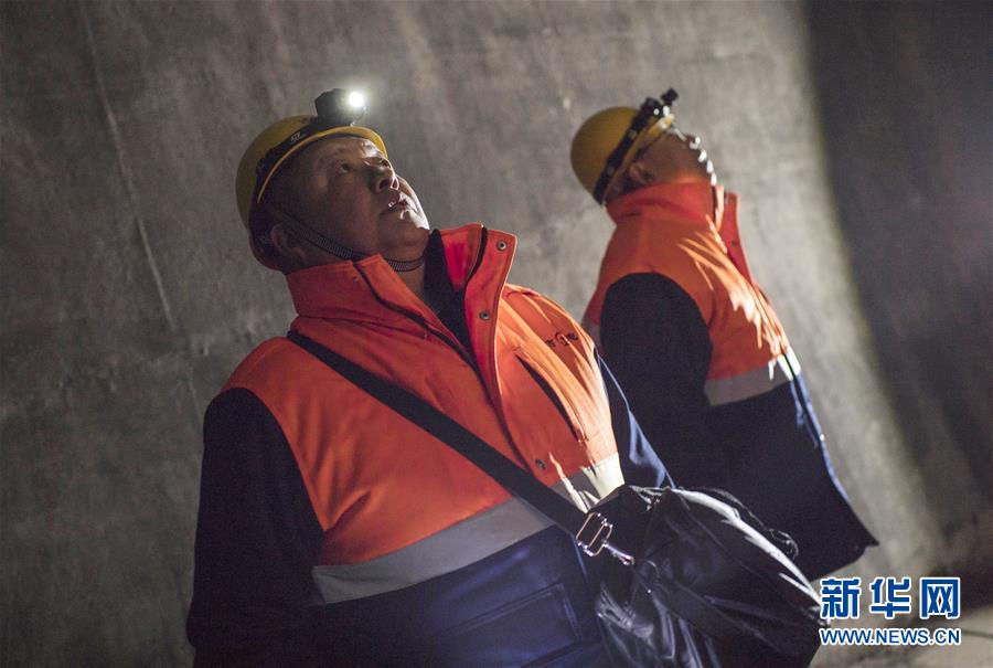 通化通信車間無線工區(qū)鐵路通信工人觀察隧道頂部通信線纜是否有外露情況(1月10日攝)。2020年春運1月10日拉開帷幕。新華社記者許暢攝