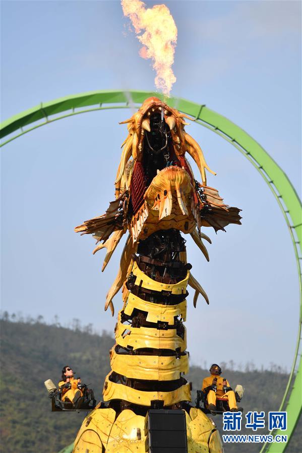 1月18日,大型機(jī)械裝置藝術(shù)品“龍馬精神”在珠海長(zhǎng)隆海洋王國巡游展示。新華社記者 劉大偉 攝