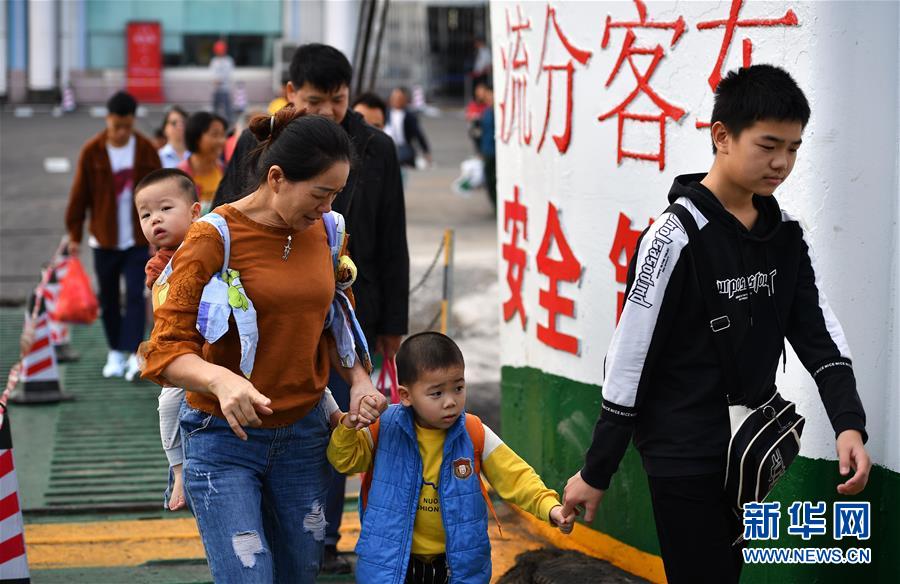 1月19日,乘客在海口秀英港輪渡碼頭登船。 新華社記者 郭程 攝