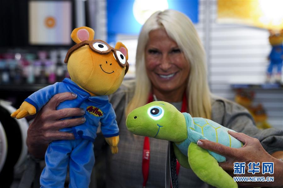 2月22日,一名展商在美國紐約舉行的2020紐約國際玩具展上展示兒童玩具。新華社記者王迎攝