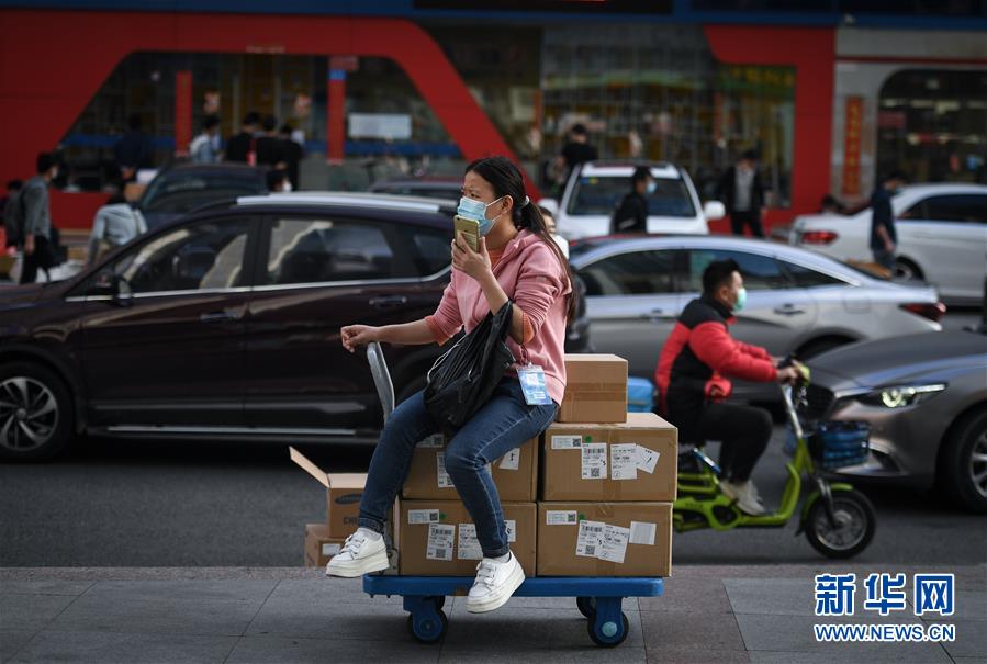2月24日,在深圳華強北街頭,一名戴著口罩的女子在打電話。 新華社記者 毛思倩 攝