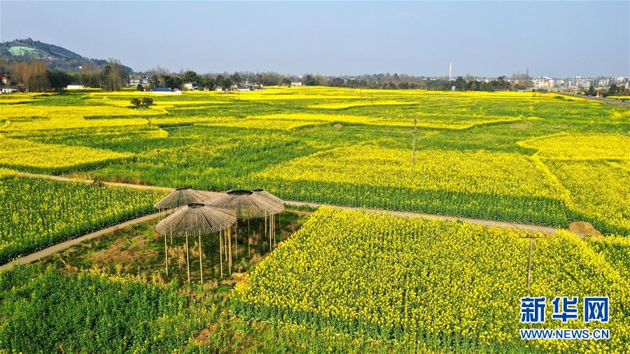 2月25日在四川省崇州市拍攝的油菜花田(無人機(jī)照片)。 新華社記者 王曦 攝