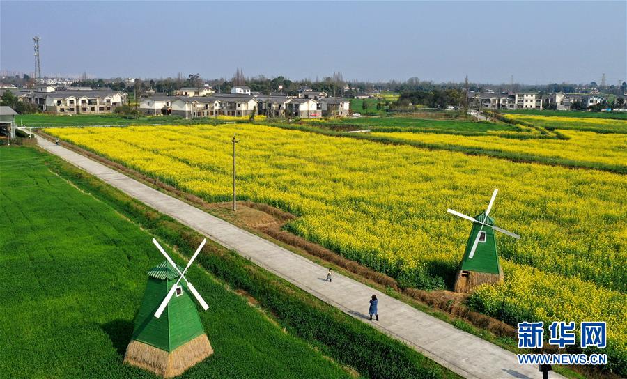 2月25日在四川省崇州市農(nóng)業(yè)產(chǎn)業(yè)功能區(qū)拍攝的油菜花田(無人機照片)。 新華社記者 王曦 攝