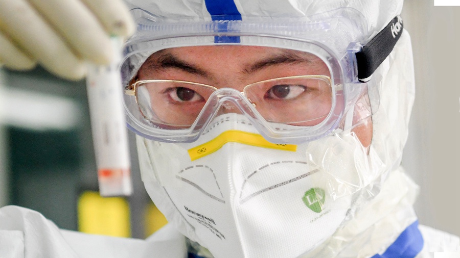 他正在進(jìn)行新型冠狀病毒核酸檢測