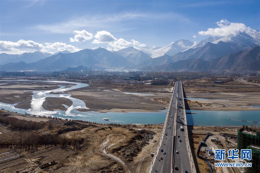 鳥瞰拉薩納金大橋(4月3日無(wú)人機(jī)拍攝)。新華社記者晉美多吉攝