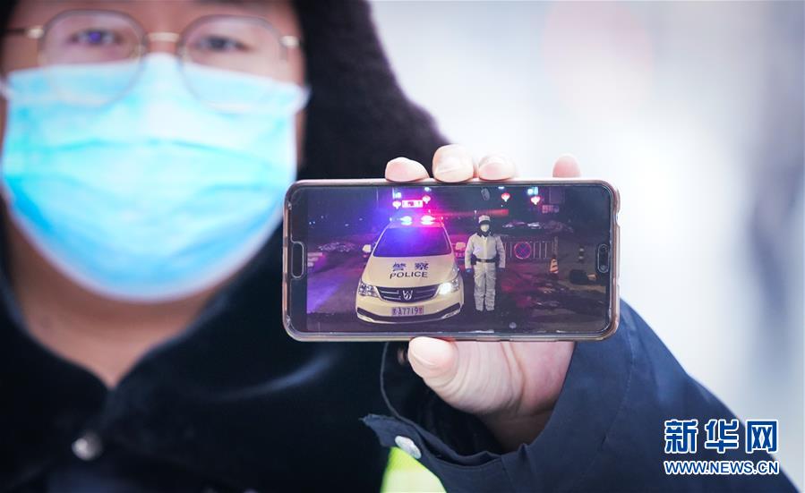 李可心展示手機里父親李論的工作照(3月1日攝)。父親李論是一名民警,負(fù)責(zé)對轄區(qū)內(nèi)疑似感染人員居住小區(qū)進行封控、排查工作。新華社記者王松攝