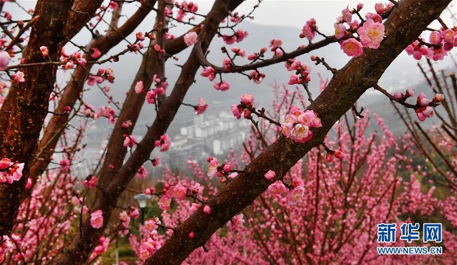 3月2日拍攝的平利縣長(zhǎng)安鎮(zhèn)洪福茶山盛開的春梅。新華社記者陶明攝