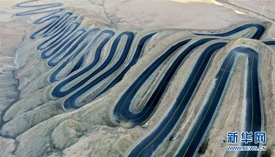 這是10月20日無人機拍攝的新疆塔什庫爾干塔吉克自治縣吾格亞提盤山公路。在中國西陲的新疆帕米爾高原,塔什庫爾干塔吉克自治縣縣城到瓦恰鄉(xiāng)之間有條蜿蜒的盤山公路,海拔超4200米,全長36公里,最大落差近1000米,被當?shù)厝朔Q為“高原天路”。盤山公路彎曲盤旋的走勢與周邊雄渾壯麗的風光,共同構成一幅壯美畫卷。這條公路名為吾格亞提盤山公路,2019年7月投入使用,便利了山區(qū)農(nóng)牧民的出行。新華社記者丁磊攝