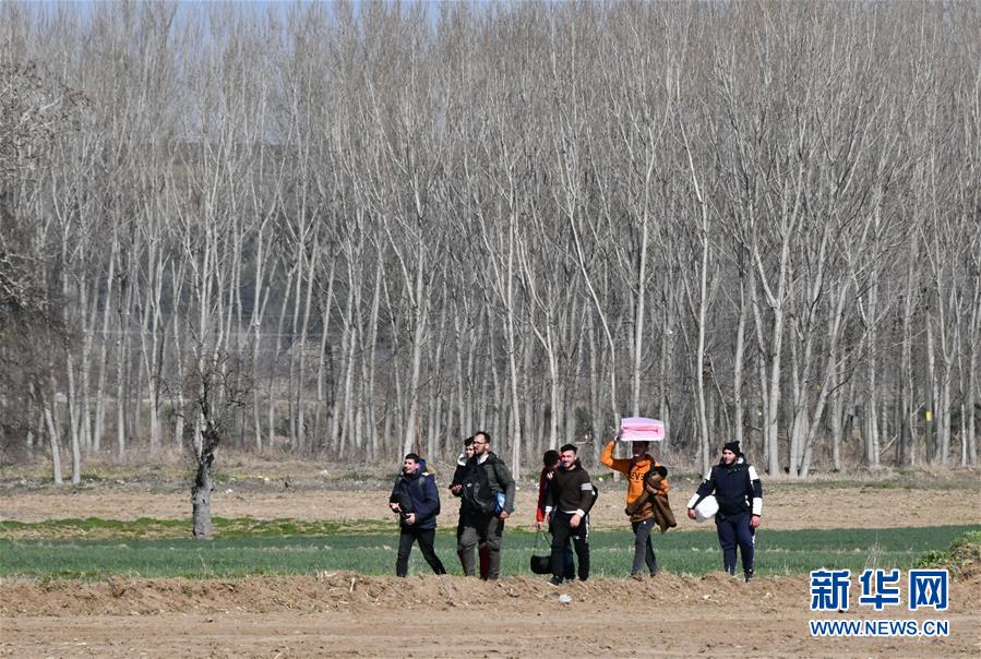 3月3日,在土耳其埃迪爾內(nèi)省,非法移民走向土耳其歐盟邊界。土耳其從上周開始放松與歐盟成員國希臘和保加利亞邊界的管控,目前有大量非法移民聚集在土耳其西北部的埃迪爾內(nèi)省靠近土耳其歐盟邊界的地方,試圖從這里進入歐盟國家。新華社記者徐速繪攝