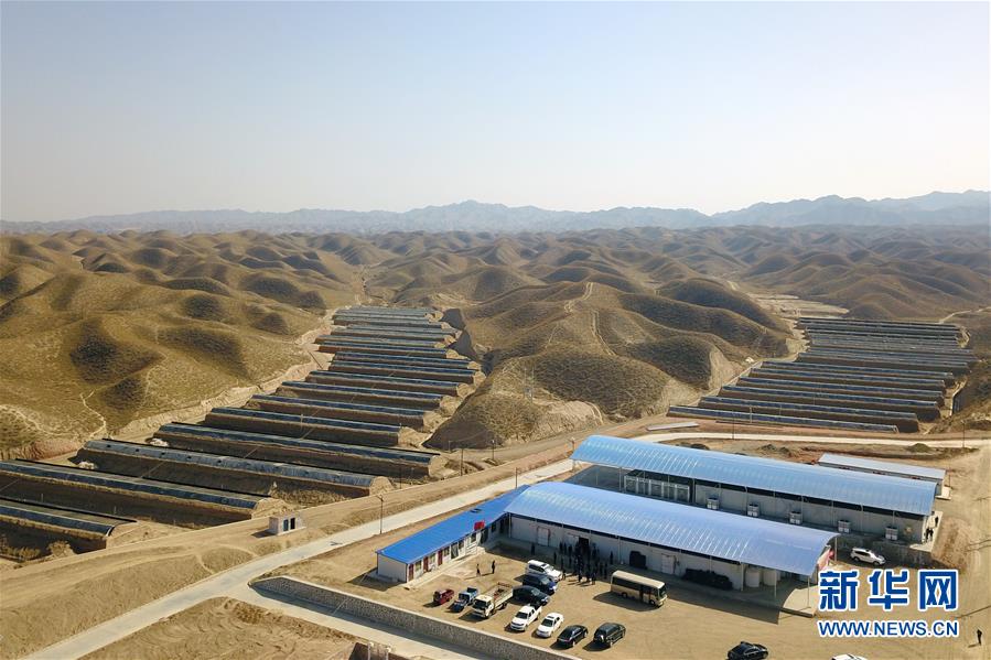 這是3月4日在靖遠(yuǎn)縣石門鄉(xiāng)路莊村易地扶貧搬遷搬入地——三灘鎮(zhèn)銀灘村拍攝的香菇大棚(無人機照片)。新華社記者 范培珅 攝