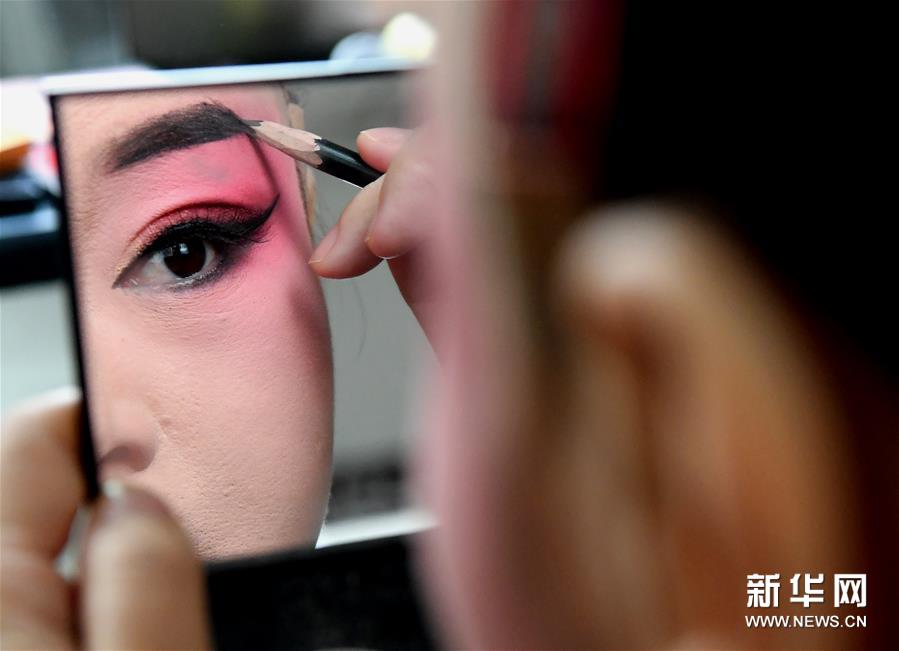 3月3日,李金玲在直播表演前化妝。新華社記者 李安 攝