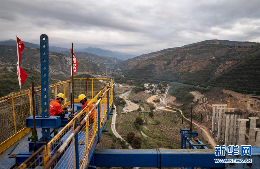 3月5日,工人在中老鐵路南溪河特大橋上施工。近期,中老鐵路玉溪至磨憨段有序復(fù)工復(fù)產(chǎn),由中鐵四局承建的中老鐵路全線重點控制性工程——元江特大橋、南溪河特大橋正在加緊施工建設(shè)。新華社記者 江文耀 攝