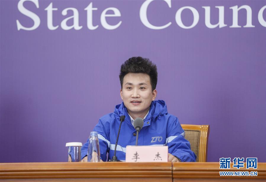 3月9日,中通快遞北京廠洼路網(wǎng)點快遞員李杰在北京出席國務(wù)院聯(lián)防聯(lián)控機制新聞發(fā)布會。