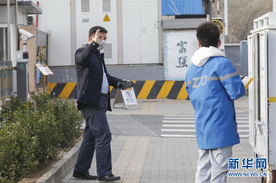 3月12日,客戶(hù)在取件之后向李杰(右)表示感謝。新華社記者張玉薇攝