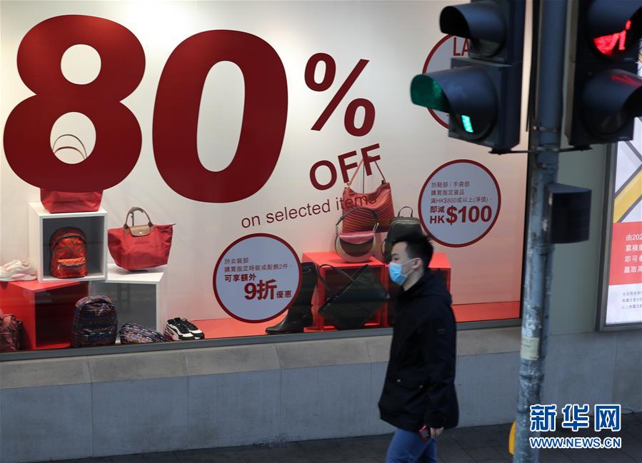 在香港中環(huán),市民戴著口罩從商店櫥窗前經(jīng)過(2月22日攝)。新華社記者李鋼攝