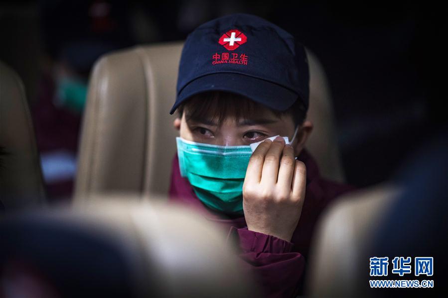 3月17日,陜西國家緊急醫(yī)學(xué)救援隊隊員閔渝婷在返程途中擦拭眼淚。新華社記者肖藝九攝
