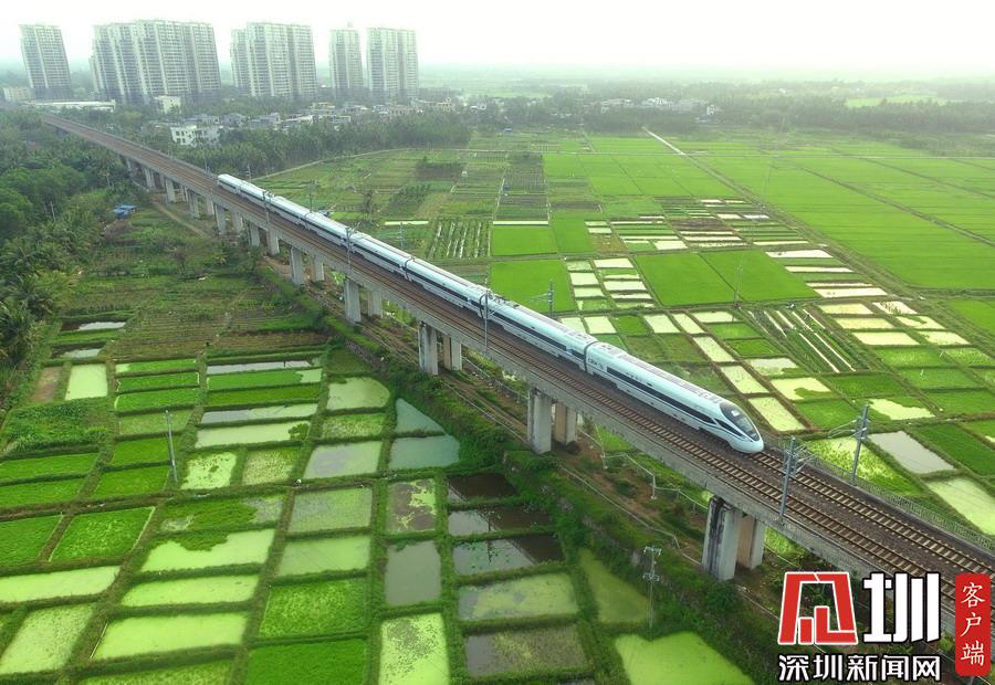2020年3月17日,海南環(huán)島鐵路一列動(dòng)車(chē)從春光明媚的瓊海城區(qū)經(jīng)過(guò)。