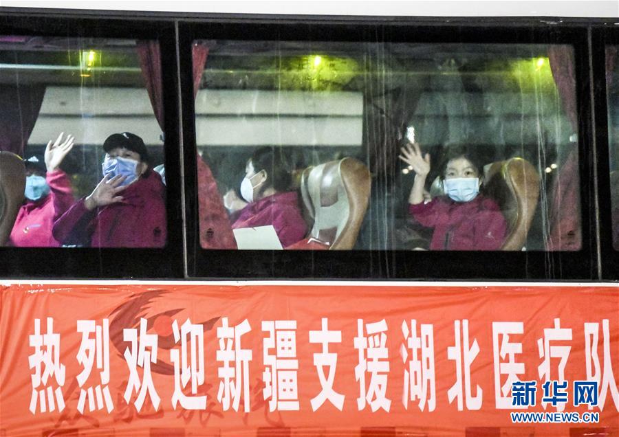 3月17日,在新疆烏魯木齊地窩堡國際機(jī)場,醫(yī)療隊(duì)隊(duì)員坐上大巴車準(zhǔn)備離開。新華社記者王菲攝