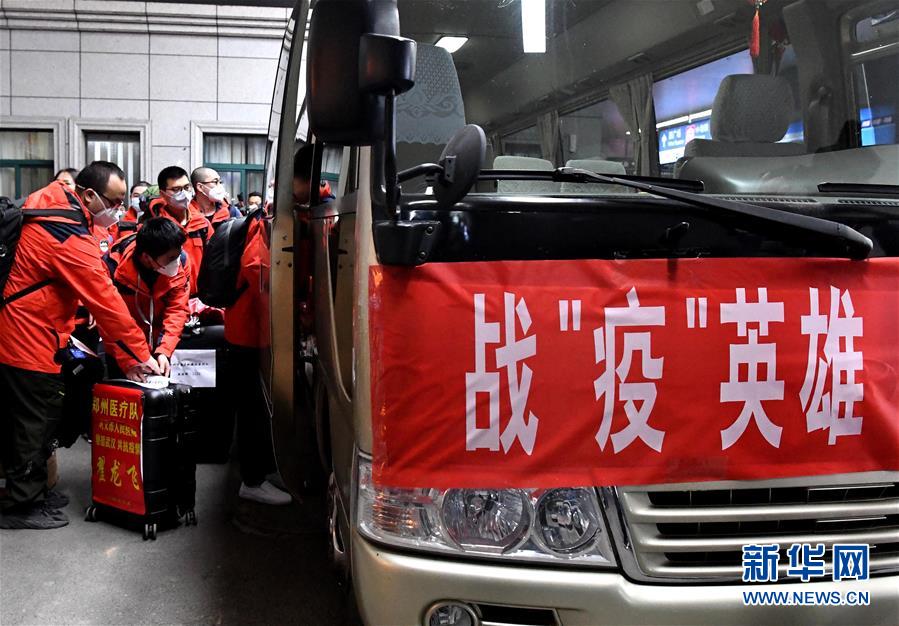 3月17日,醫(yī)療隊(duì)隊(duì)員在河南鄭州東站乘坐大巴車(chē)。新華社記者李安攝