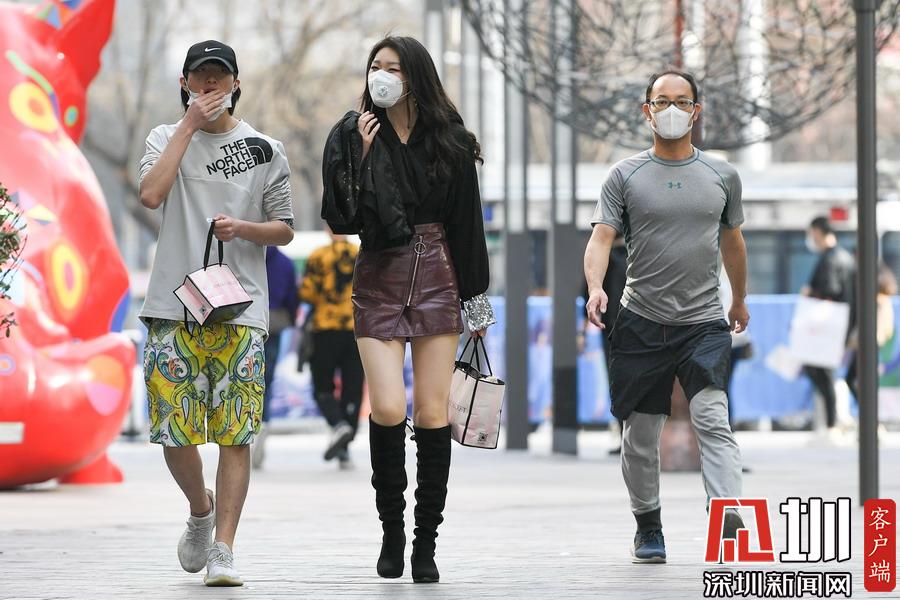 2020年3月18日,北京,據(jù)北京市氣象局發(fā)布,18日北京最高氣溫23攝氏度。在朝陽區(qū)三里屯,不少潮人已迫不及待換上了短裙短褲出街,享受難得的春光。