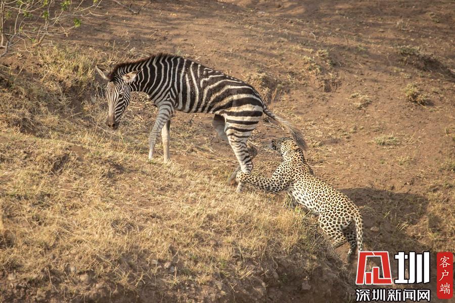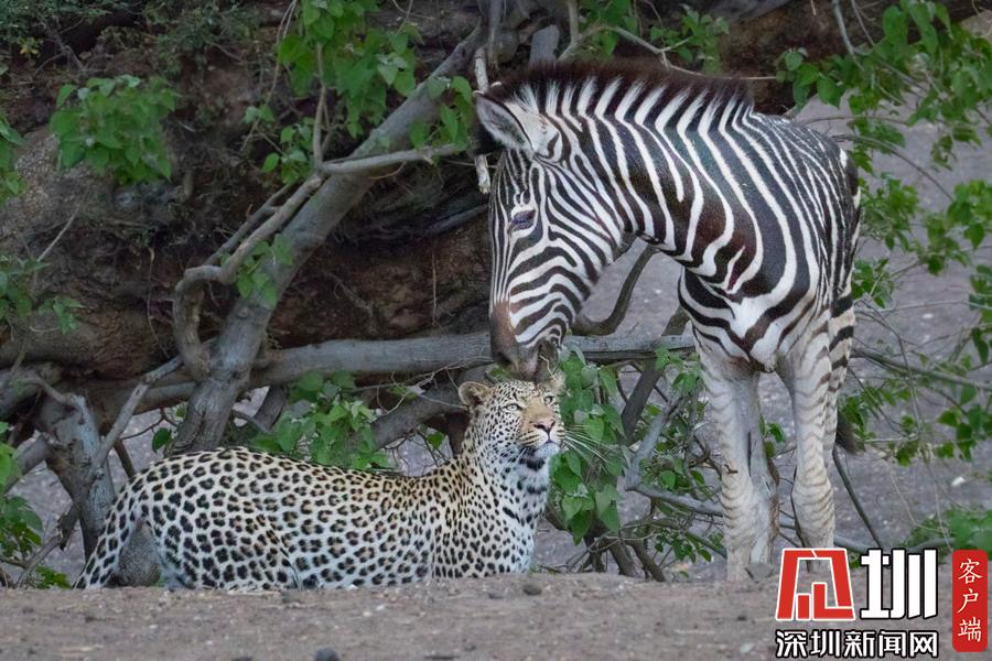 獵豹仿佛和斑馬成為了好友,緊緊跟隨這個新伙伴一起行走,最終斑馬將“屁股”對準(zhǔn)了獵豹的頭部,而獵豹似乎在聞味道。