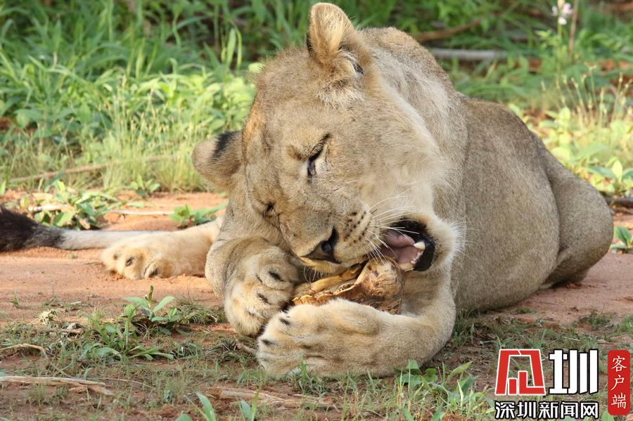 肯尼亞獅子捉了只烏龜當(dāng)“零食”啃不到肉肉好生氣!