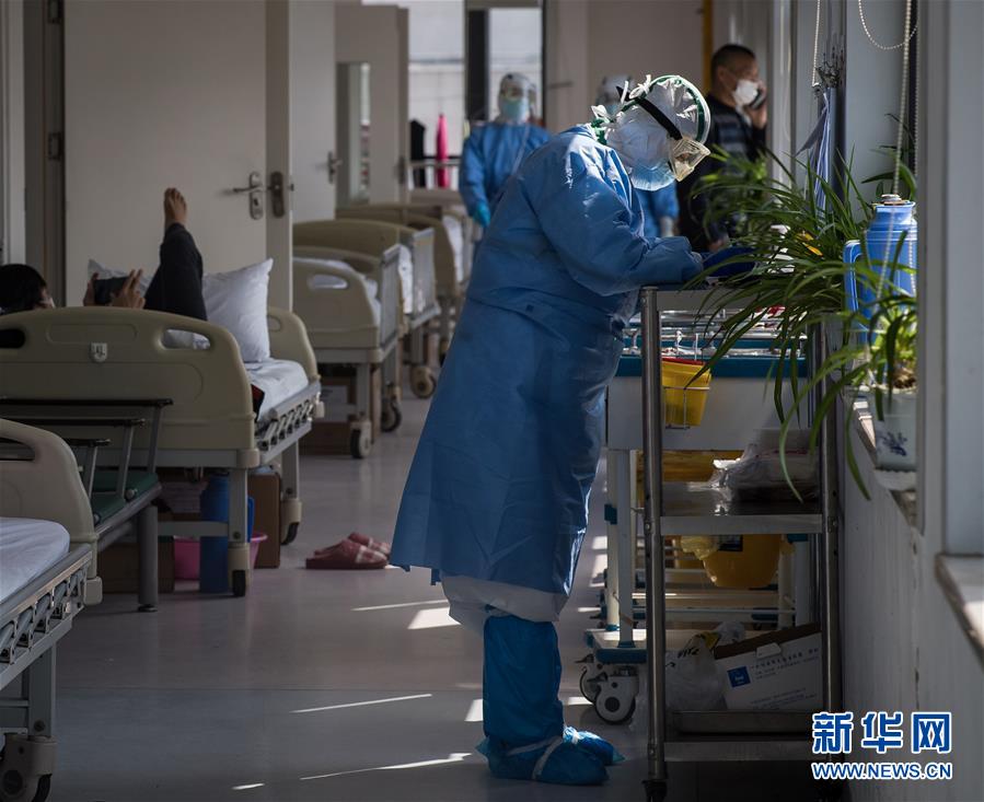 3月19日,在武漢市肺科醫(yī)院隔離病房,內(nèi)蒙古醫(yī)療隊(duì)隊(duì)員陳亮在現(xiàn)場(chǎng)忙碌。 新華社記者 肖藝九 攝