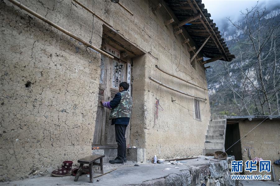 云南省永善縣大興鎮(zhèn)駱丘村村民晏付高關上老屋的大門準備離開(3月14日攝)。 新華社記者 江文耀 攝