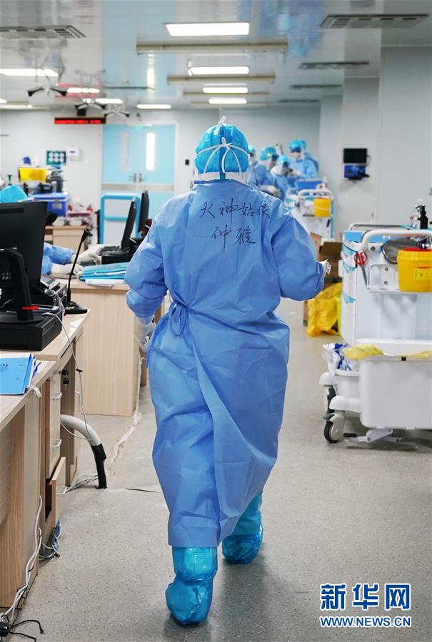 80后護士仲雅快步走向患者床旁準備護理(3月20日攝)。 武漢火神山醫(yī)院重癥醫(yī)學一科的護理團隊共50名護士,其中絕大多數是80后、90后女性,她們不懼危險,奮戰(zhàn)在抗擊疫情的最前沿“紅區(qū)”。 新華社記者王毓國攝