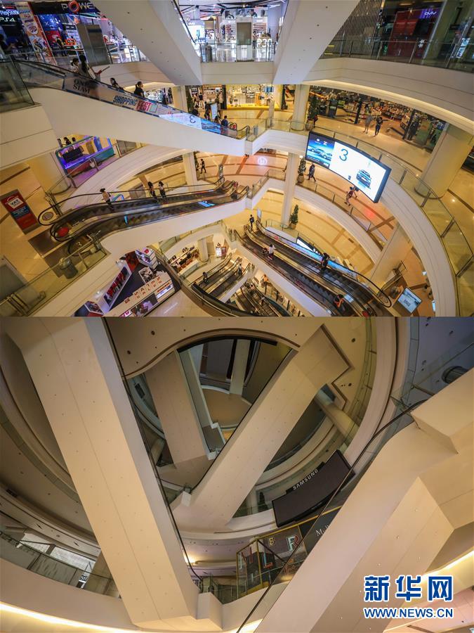 這是3月21日拍攝的泰國(guó)曼谷暹羅百麗宮商場(chǎng)(上圖)和3月22日拍攝的停止?fàn)I業(yè)的商場(chǎng)的對(duì)比圖。