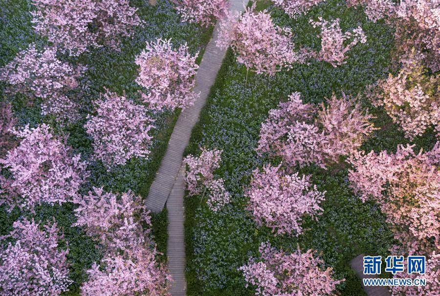 這是3月14日拍攝的武漢東湖磨山櫻園景色。近日氣溫漸升,武漢東湖磨山櫻園里的櫻花漸次盛開,帶來春天的氣息。新華社記者程敏攝