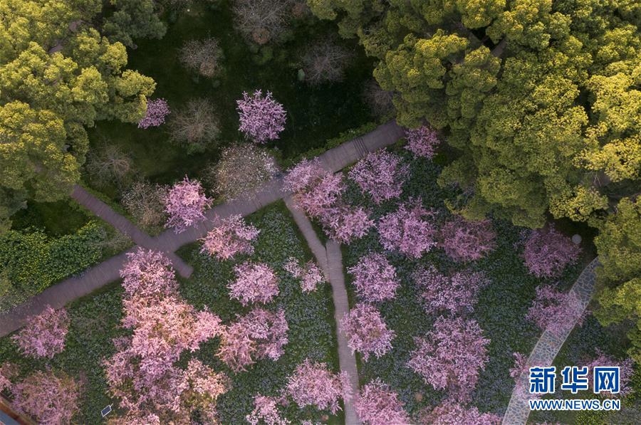 武漢大學(xué)校園一角(3月16日攝,無人機照片)。進入三月中旬,武漢大學(xué)櫻花開放。因疫情防控,校園不對公眾開放,為了滿足大眾對美景的期待,武漢大學(xué)開啟“云賞櫻”,3月16日至25日每天上午10時至下午16時,通過網(wǎng)絡(luò)為公眾呈現(xiàn)校園櫻花實景。新華社記者程敏攝