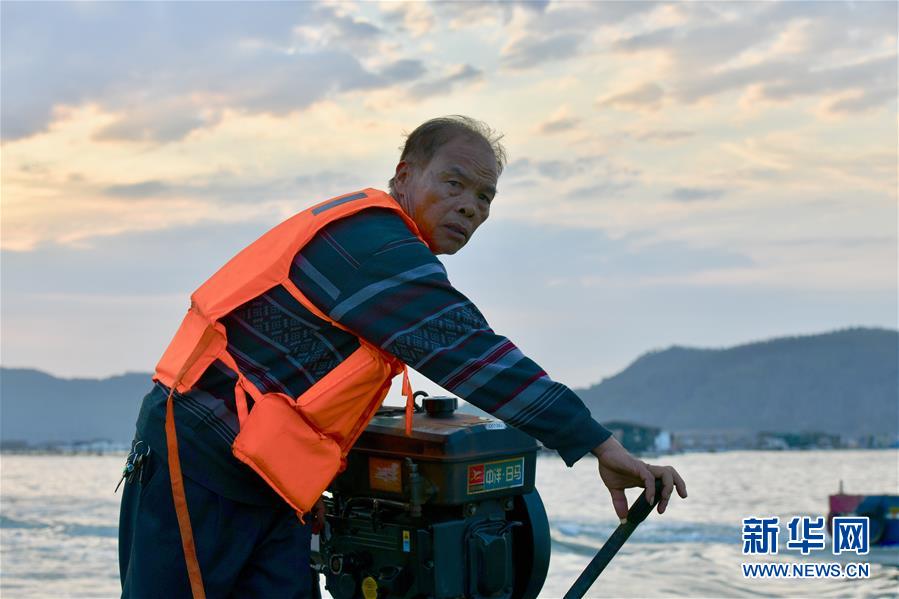 3月26日,福建漳州東山縣岐下村村民陳炎松駕駛著小舢板由魚骨沙洲景點返回碼頭。新華社記者姜克紅攝