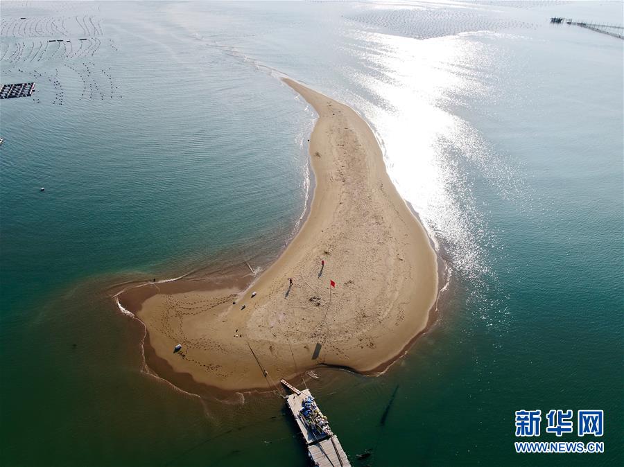 這是3月26日拍攝的福建漳州東山縣岐下村附近海域的魚(yú)骨沙洲(無(wú)人機(jī)照片)。新華社記者姜克紅攝