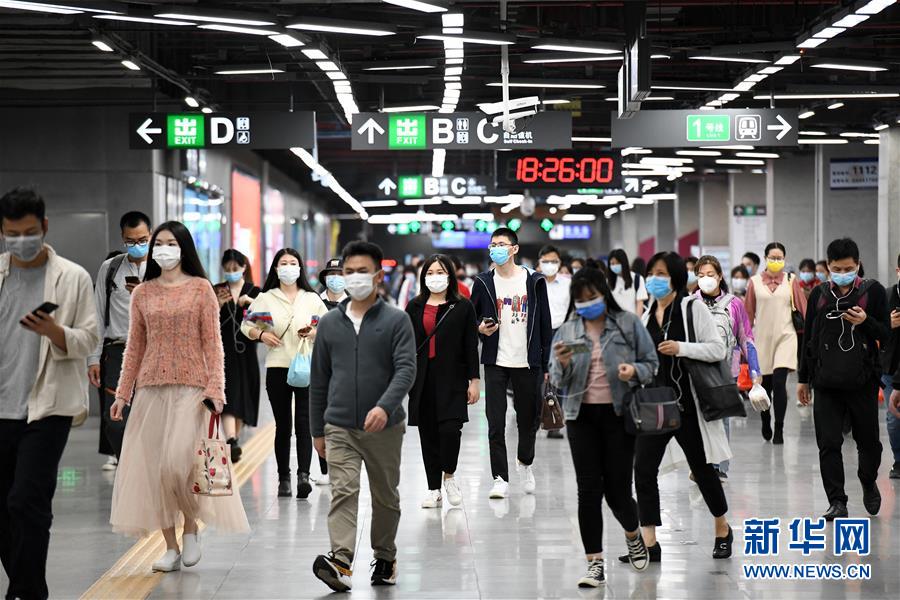 3月18日晚高峰時段,在深圳地鐵車公廟站,乘客在站廳內(nèi)通行。新華社記者梁旭攝