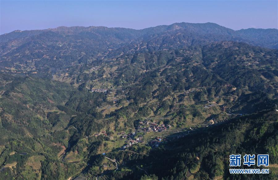 這是融水苗族自治縣桿洞鄉(xiāng)小河村高羽苗寨的木樓和梯田(3月31日攝,無(wú)人機(jī)照片)。新華社記者黃孝邦攝