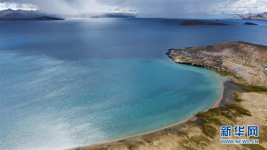 這是普姆雍錯湖邊的堆瓦村(9月19日無人機(jī)拍攝)。普姆雍錯位于西藏山南市浪卡子縣境內(nèi),海拔五千多米,在周圍雪山融水的滋潤和陽光的照耀下,美若少女。新華社記者晉美多吉攝