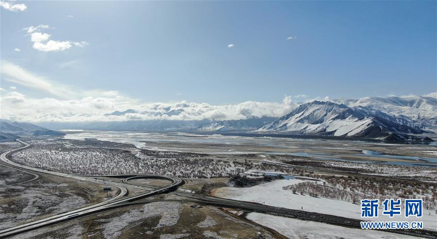 這是3月24日拍攝的雅魯藏布江沿岸雪景(無人機(jī)照片)。新華社記者普布扎西攝
