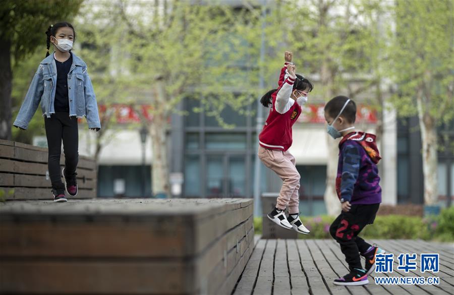4月1日,在武漢天地廣場,幾個小朋友在玩耍。新華社記者費(fèi)茂華攝
