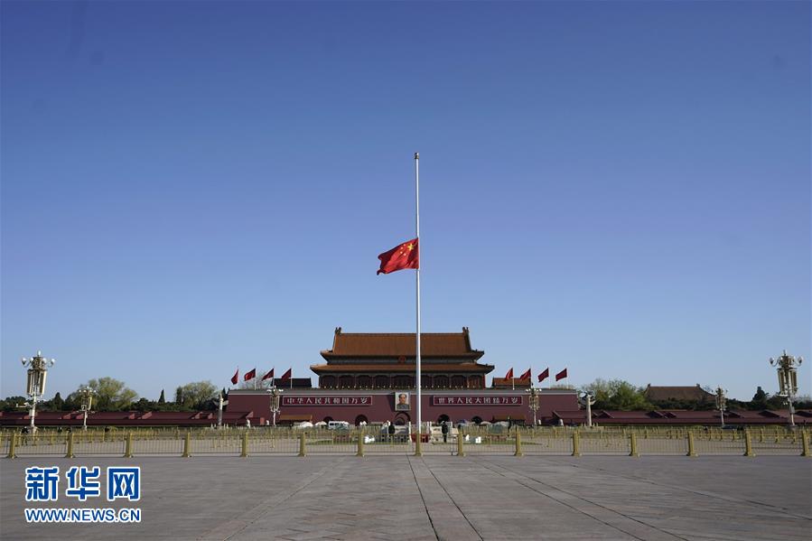 4月4日,北京天安門廣場降下半旗,表達(dá)對抗擊新冠肺炎疫情斗爭犧牲烈士和逝世同胞的深切哀悼。新華社記者 邢廣利 攝