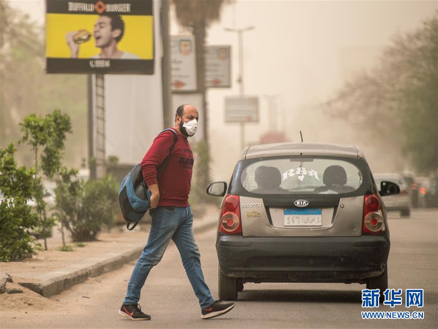 這是4月5日在埃及首都開羅拍攝的戴口罩的行人。新華社記者鄔惠我攝