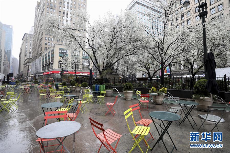 3月23日,美國紐約街頭的休息區(qū)空無一人。美國紐約州州長安德魯·科莫3月20日簽署針對該州1900多萬居民的行政令,規(guī)定全州所有非關鍵行業(yè)企業(yè)的工作人員居家辦公以緩解新冠肺炎疫情。該行政令將于當地時間22日晚間生效。新華社記者王迎攝