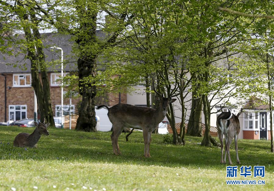 4月8日,在英國(guó)倫敦東部一個(gè)居民區(qū),附近公園里的鹿在草坪上駐足。隨著新冠疫情在英國(guó)的擴(kuò)散,政府要求人們減少不必要的外出。倫敦東部一個(gè)居民區(qū)附近公園里原來(lái)散養(yǎng)的鹿紛紛從公園走出來(lái),或吃草或接受附近居民的喂食,成為特殊時(shí)期居民區(qū)里的新“客人”。新華社記者韓巖攝