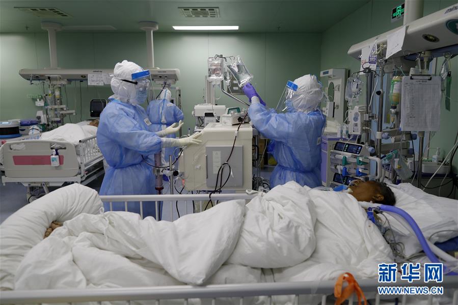 4月24日,在位于武漢的華中科技大學(xué)同濟(jì)醫(yī)學(xué)院附屬協(xié)和醫(yī)院西院,醫(yī)務(wù)人員在護(hù)理核酸檢測(cè)結(jié)果轉(zhuǎn)陰的新冠肺炎病人。新華社記者沈伯韓攝