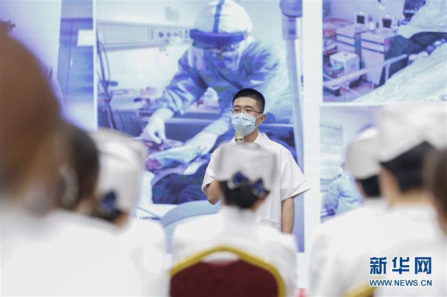 4月26日,援鄂國(guó)家醫(yī)療隊(duì)護(hù)士代表田濟(jì)暢分享戰(zhàn)“疫”故事。當(dāng)日,北京大學(xué)人民醫(yī)院為97名2019屆新入職護(hù)士舉行隆重莊嚴(yán)的授帽儀式和重溫南丁格爾誓言的活動(dòng),以此紀(jì)念南丁格爾誕辰200周年和即將到來(lái)的“國(guó)際護(hù)士節(jié)”。活動(dòng)還邀請(qǐng)了5名援鄂國(guó)家醫(yī)療隊(duì)護(hù)士代表分享戰(zhàn)“疫”故事。新華社記者張玉薇攝